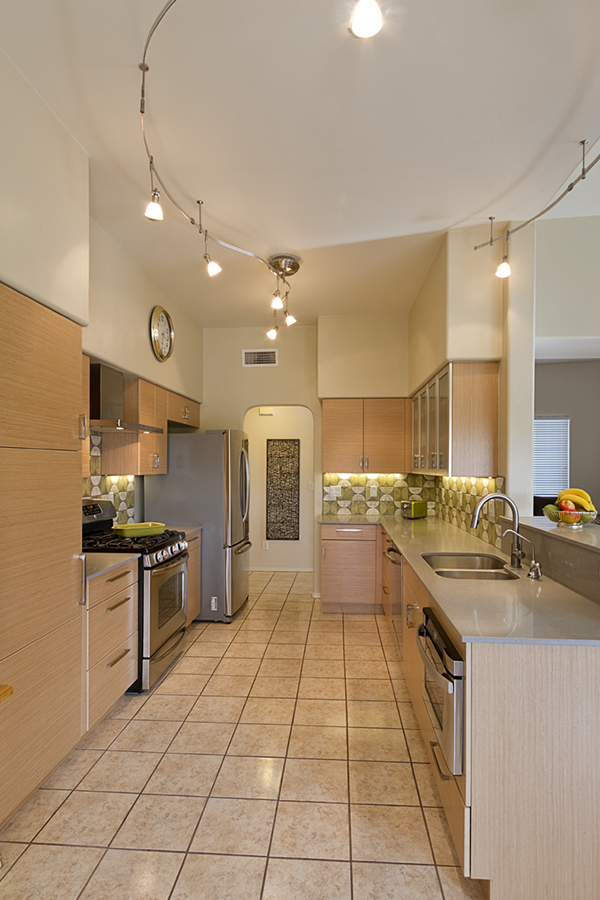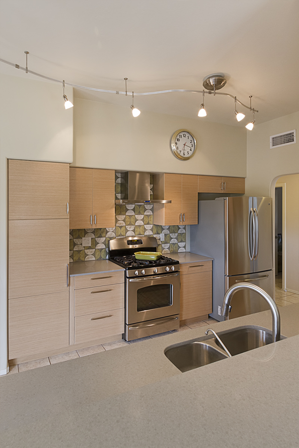 Referrals are the best source of clients and this referral came from one of my best friends. The owner definitely leaned towards contemporary design. She had a set dollar amount she wanted to spend a few fixed elements we would need to incorporate (flooring and appliances). She wanted to be cautious to not over design or spend for the neighborhood. We explored refacing, refinishing and totally replacing the cabinets and after crunching the numbers, the most bang for the buck ended-up being replacing. We would be able to make slight changes to the layout and improve storage while getting the cleaner look of a ‘frameless’ cabinet with a better quality.