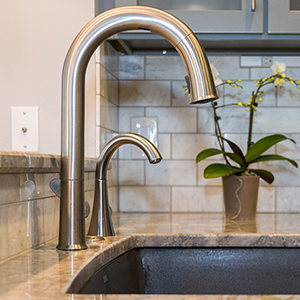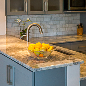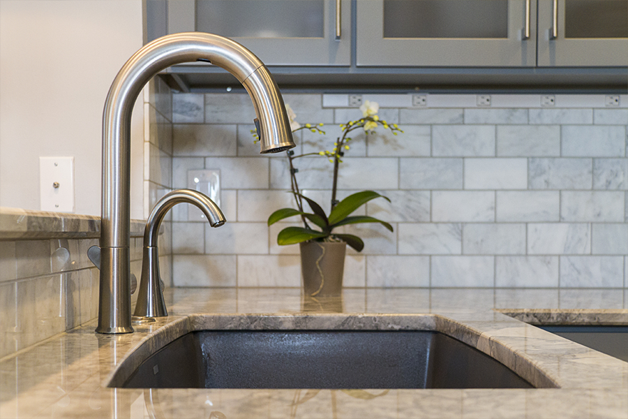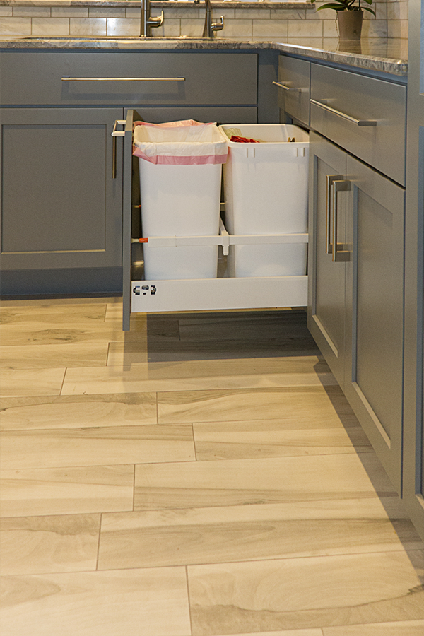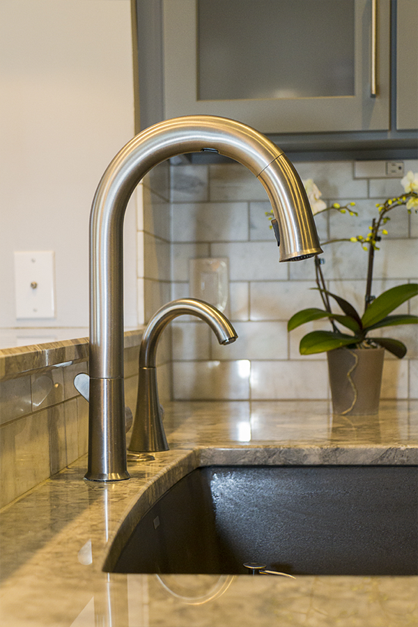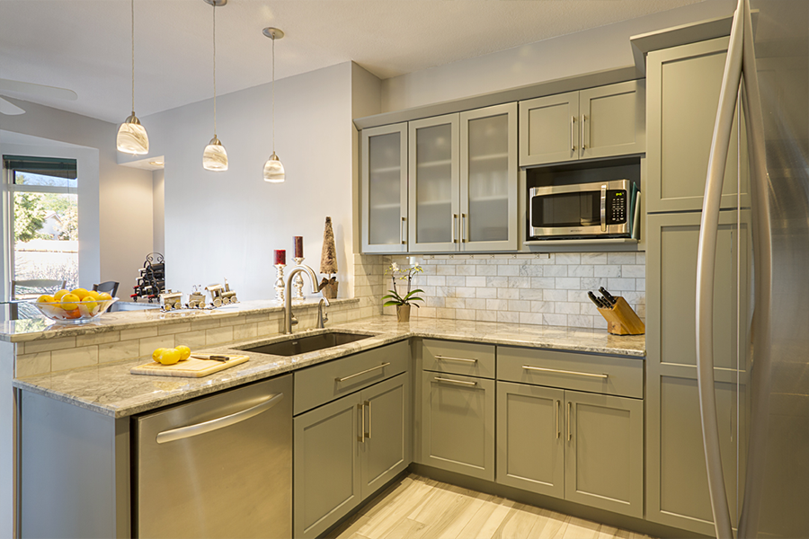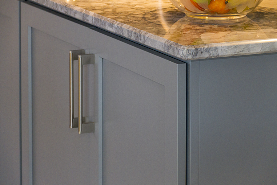 The trouble with grey is the finding the hidden color behind the scenes. You have to ask yourself “do I have a blue gray, a green gray, a brown grey…..” and then make sure all materials being selected are the right shade of grey. The homeowner wished to expand the kitchen and transform this subdivision home into her place of respite. Finding one material you love and building from it is greatly helpful in guiding decisions. When the owner and I first met she had floor tiles, granite samples, backsplash tiles and paint colors that she had collected and liked individually, but when she put them together they simply clashed and she felt like she was going in circles. I had her pick from these her favorite piece, which happened to be a beautiful dolomite counter called Super White and from there we picked all of the materials to highlight the grey that was in that sample.