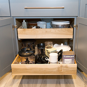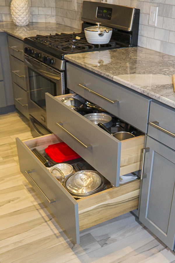 Next was the expansion. She had already commenced construction on pushing the living wall out to align with the kitchen nook. This allowed an additional three feet of storage and counter space and thus created a pass thru to make is easier to connect with guests in the living room while preparing food. The additional counter space on this side allowed an increase of pantry storage across the kitchen and a general improvement of accessibility and storage solutions were incorporated while leaving the appliances in their established locations. The end result achieved the balance she desired and it’s onto the next phase, enjoying the fruits of labor.