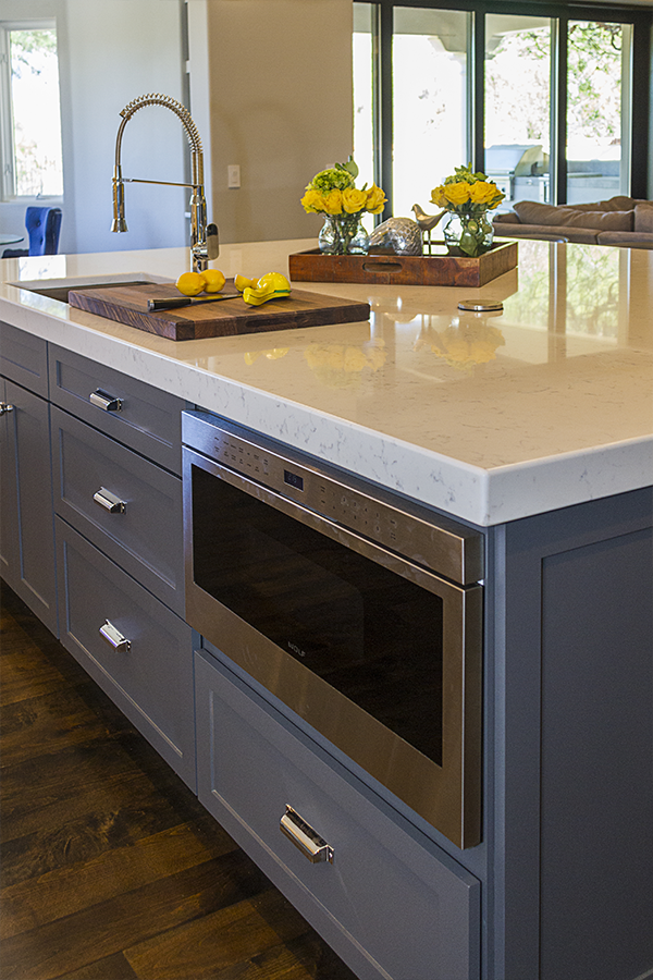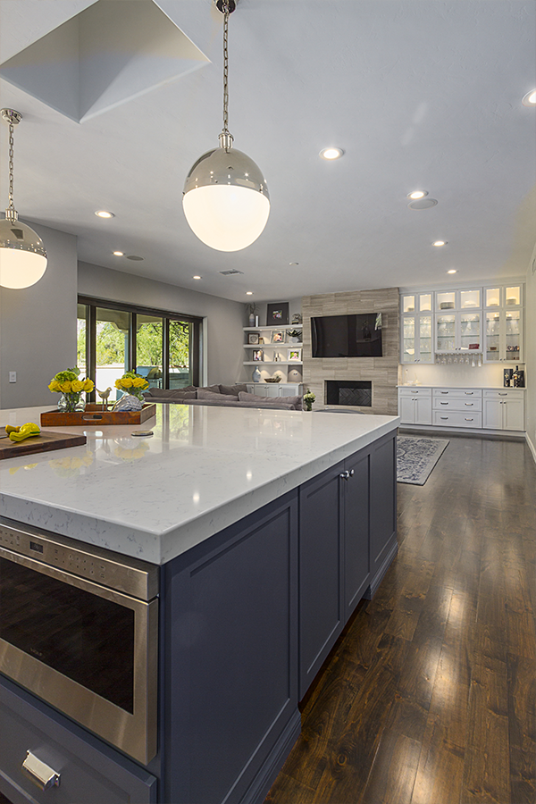 First, it was what if we get rid of some of a wall and the contractor said sure. Next, it was what if we get rid of the whole wall, a couple challenges but it could be done! Then it was ‘what’s the biggest island we could do?’ I outlined the space we had to work with and when they asked me to make it all one island I had to do some research to rationalize it would work.