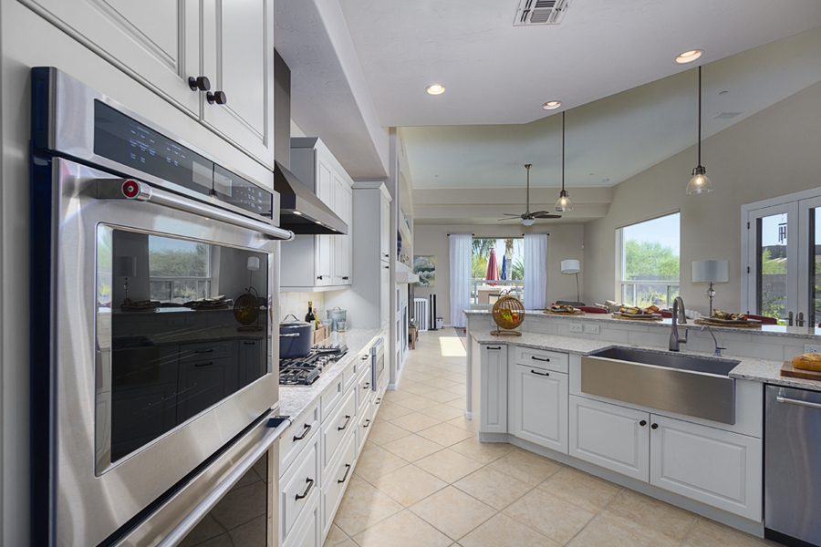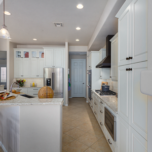 Three common components that seem to repeat in a remodel are: 1) Keep the existing floor 2) Maintain general layout of appliances and plumbing 3) Improve the look and function. That seems pretty-basic, it could tend to get boring, but clients love to be wowed with a small detail that makes all the difference in the world.