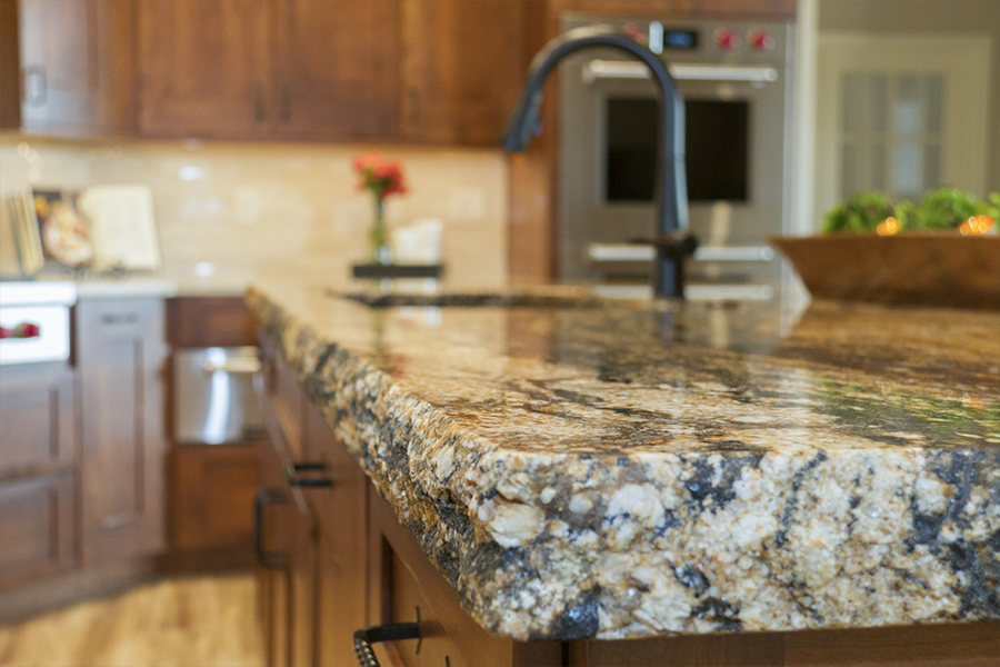 The chiseled edge granite counter-tops on the island and wood plank tile floors add to the rustic appeal, as do the island pendants and travertine backsplash. The same finishes carried into the bathroom. Bronze fixtures and neutral porcelain tile added texture to the small space. The warmth of the stone and fixtures brings a cozy feeling though out the home. The client loves the ease the home brings to them after a long day at work.